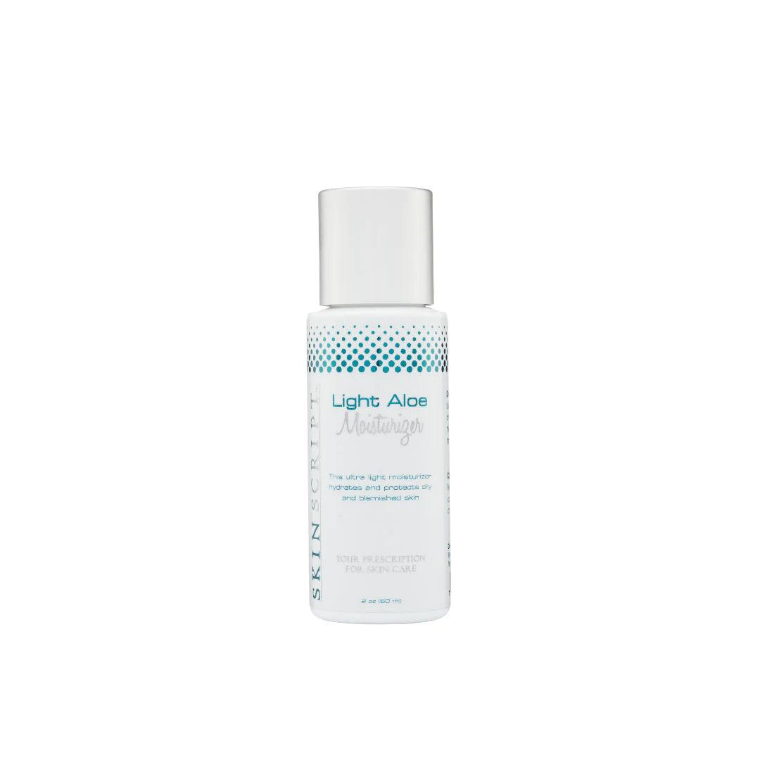 - 2 oz Light Aloe Moisturizer normalizes and hydrates skin without leaving a heavy feel or film behind. Antioxidants and skin soothing agents in the moisturizer minimize irritation and environmental damage, resulting in clear, healthy skin.