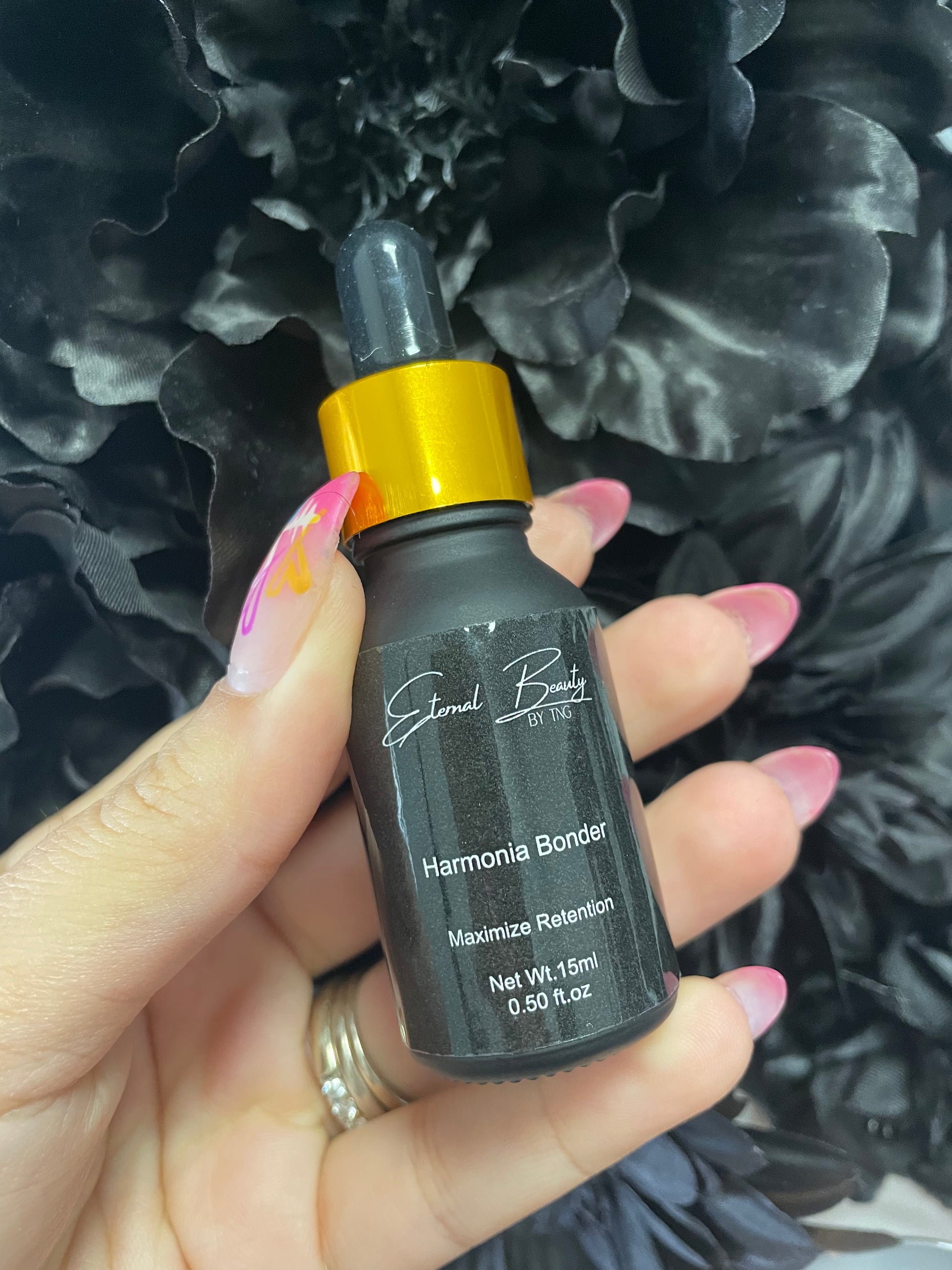 Our Harmonia Bonder instantly locks in adhesive fumes and enhances retention with the fastest curing time. This product is amazing for all clients especially sensitive clients due to the fact that it seals in excess fumes within the base where our bonder is applied.